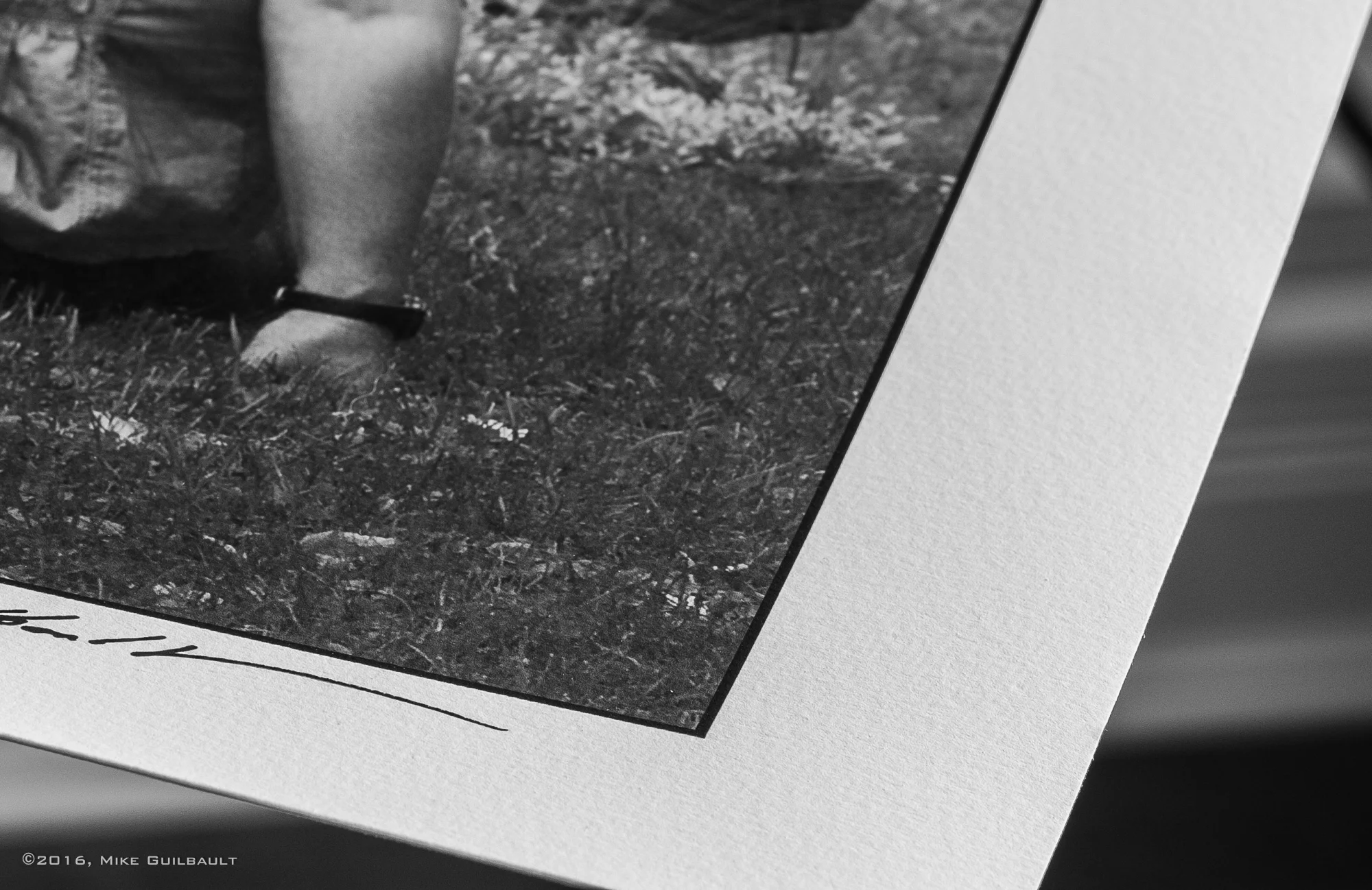 Your portrait is printed with a 1/2” to 3/4” border around the image for safe handling and to help protect against contaminating the actual printed image. This also allows for a small “reveal” around the image when matted which may include a title and the artist’s signature.
